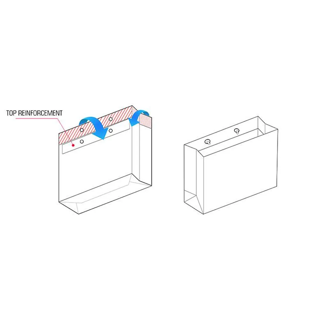 In high-end paper carrier bags (kraft, art paper, coated, or laminated), top reinforcement is a standard feature for ensuring structural integrity while maintaining an elegant, professional exterior.